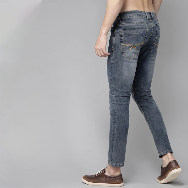 Blue with a tinge of green medium wash 5-pocket low-rise jeans, clean look, heavy fade, has a button and zip closure, and waistband with belt loops Read more