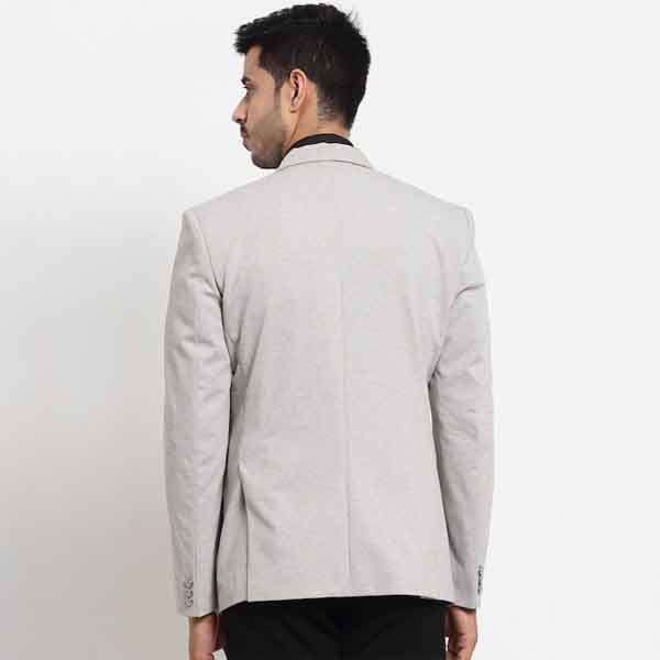 Grey solid regular-fit casual blazer, has a shawl collar, long sleeves, single-breasted with double button closure, two pockets, one welt pocket and a double-vented back hem. Read more