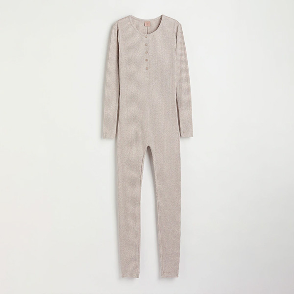 Jumpsuit in ribbed jersey made from a soft modal and cotton blend with a round neckline buttons at the top and long sleeves. Read more
