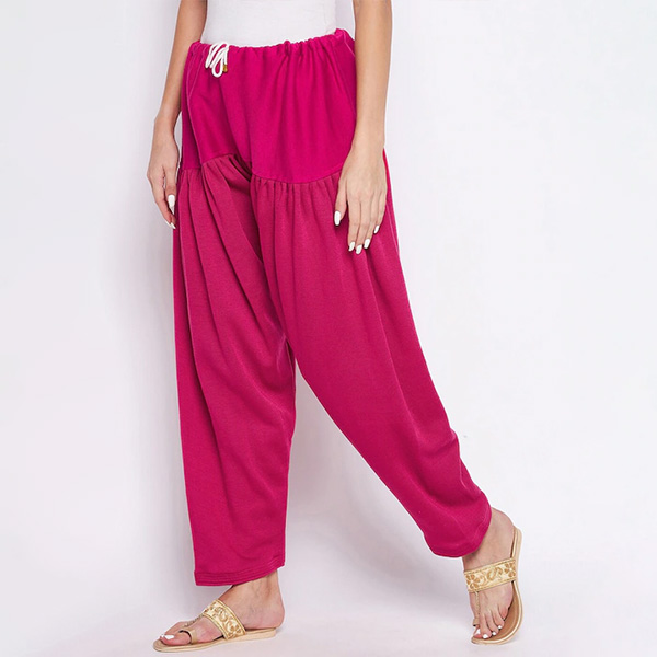 Magenta solid loose-fit salwar, has a waistband with drawstring closure Read more